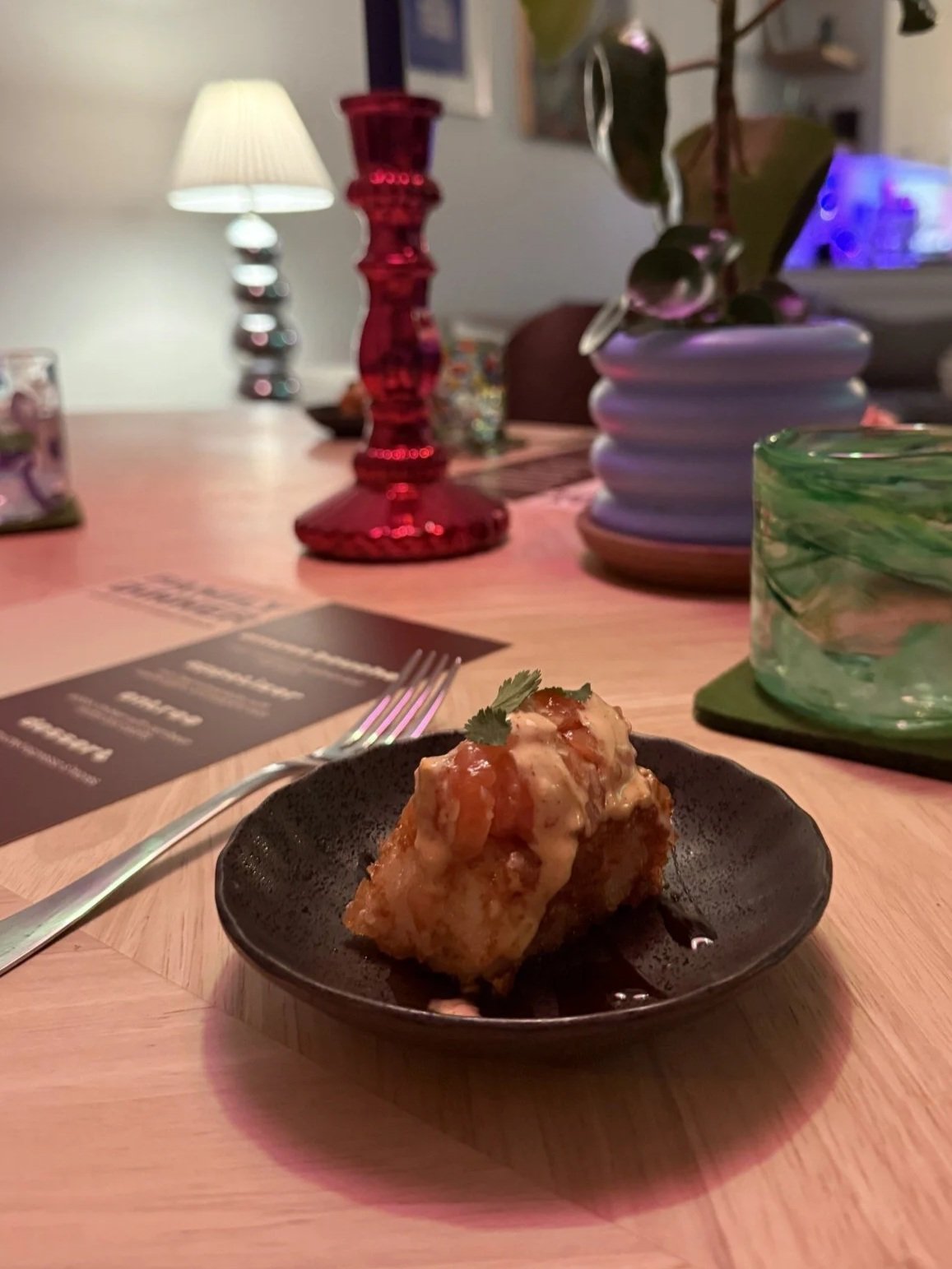 We host private, small-group dinners with varying menus. Typical dinners include 4-5 curated courses with a surprise wine pairing.